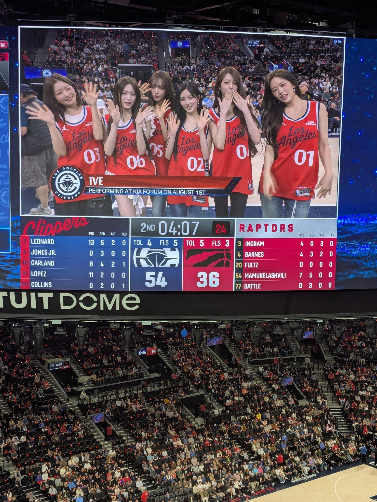 北京時間3月26日,快船在主場戰(zhàn)勝猛龍。本場比賽,韓國女團(tuán)IVE受邀前往現(xiàn)場觀賽。