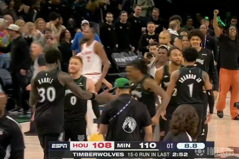 跌宕起伏,火箭加時13-0一度占優(yōu),森林狼15-0逆轉創(chuàng)歷史紀錄