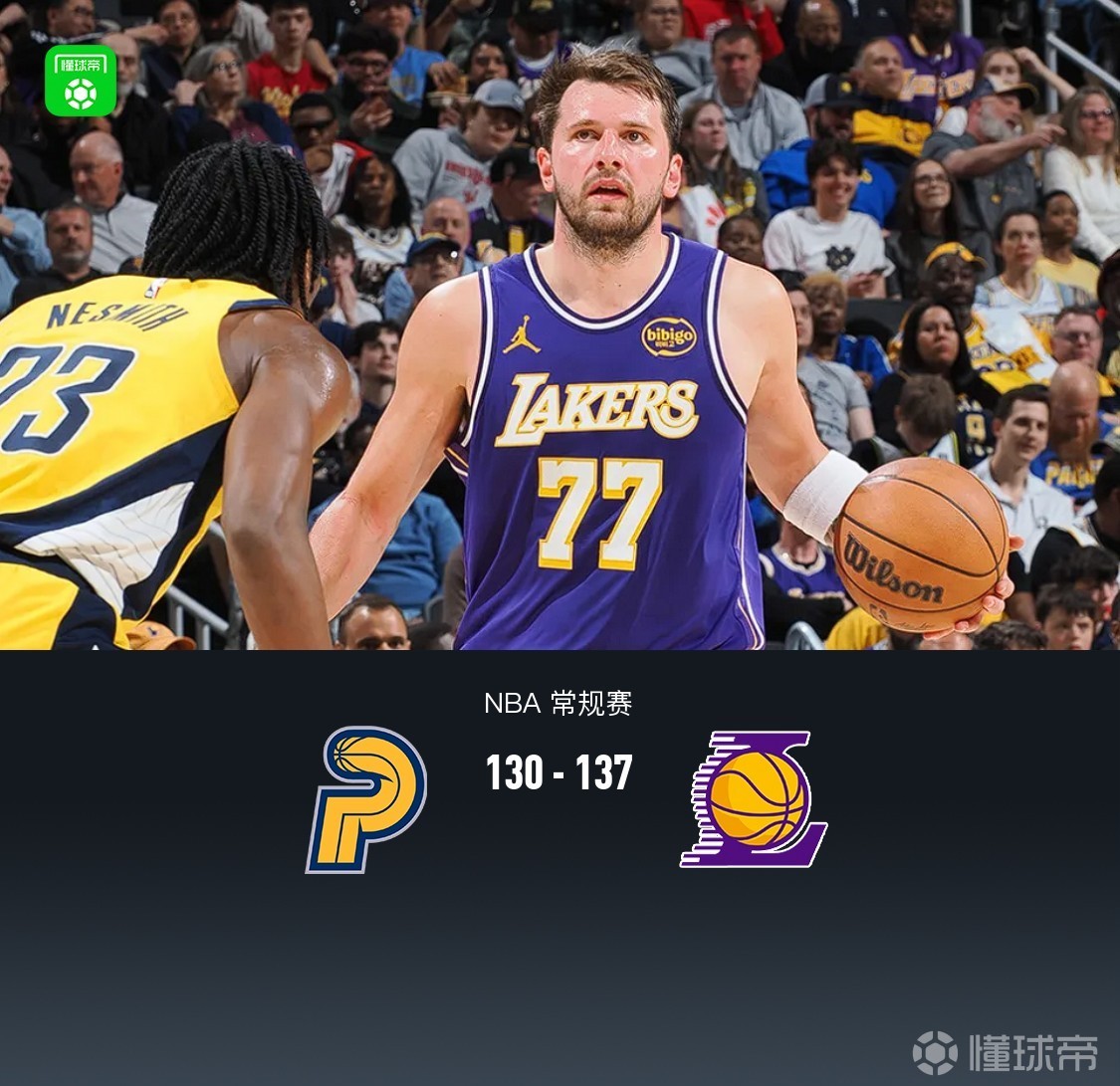湖人4人20+以137-130力克步行者,東契奇43+6+7,詹姆斯23+9+9